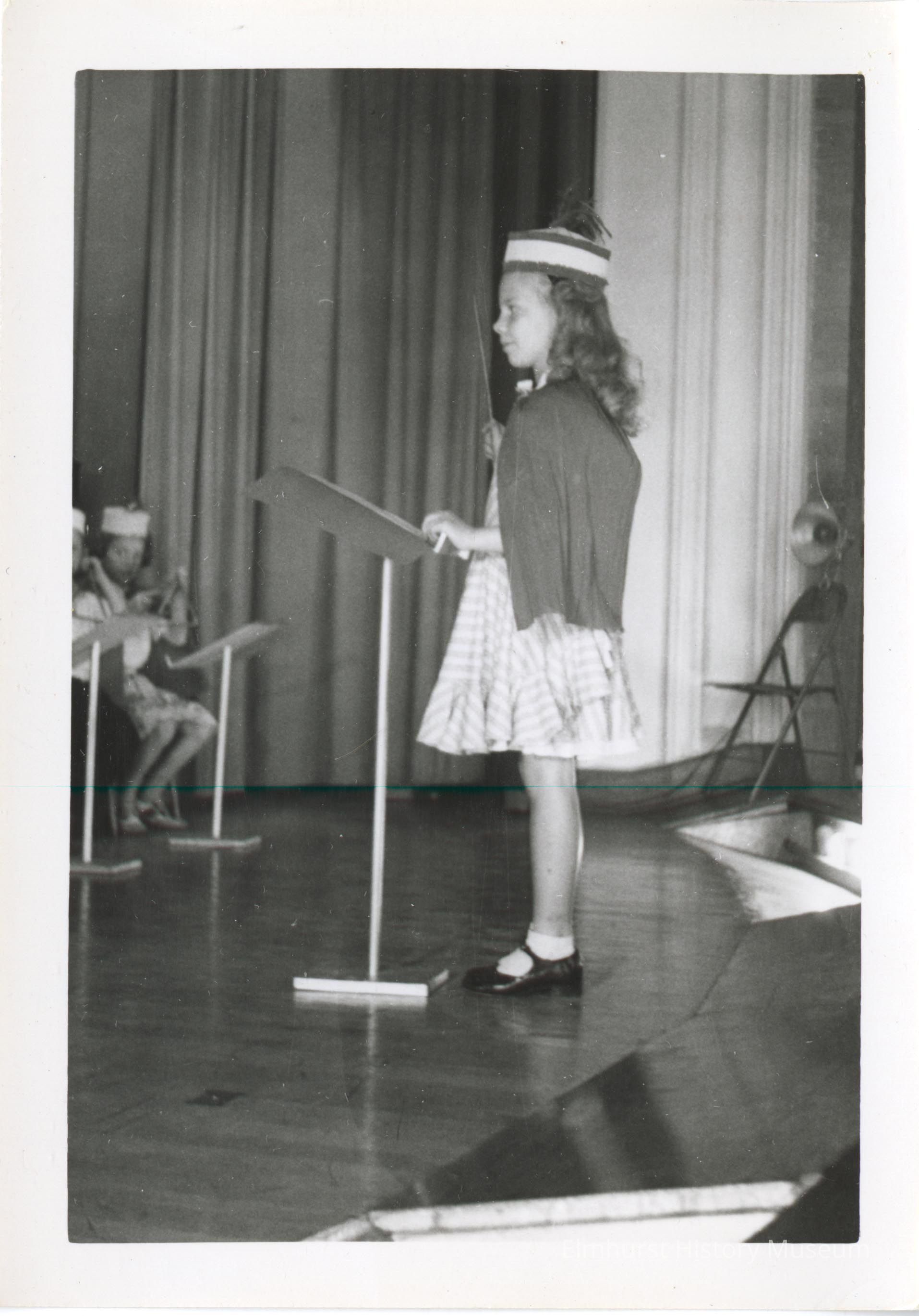 Washington School student Christine Van Norman conducts the rhythm band.Photograph Details