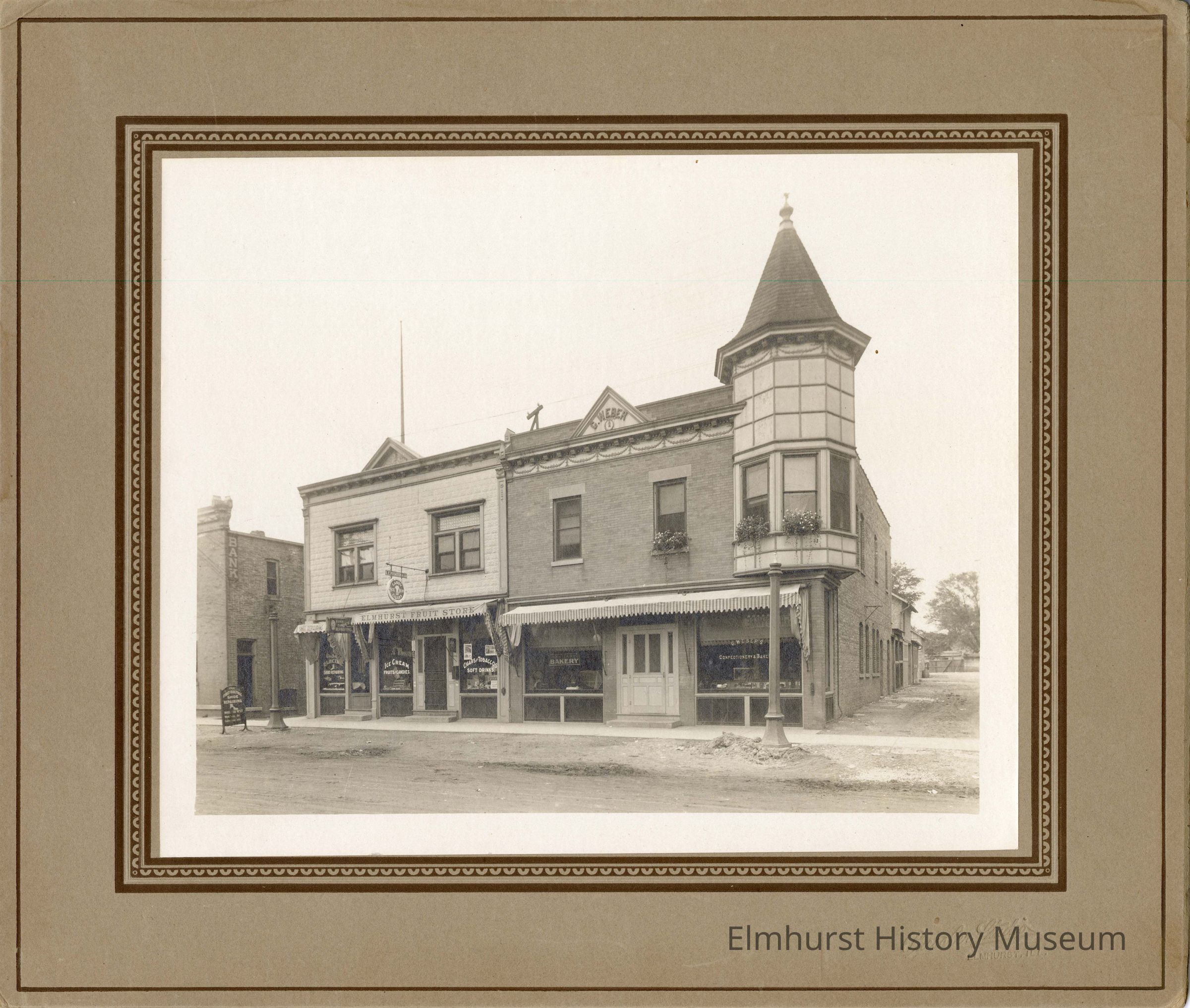 Weber's Bakery at 112 N. York Street. Elmhurst Fruit Store is in the shopfront to the south.Photograph Details