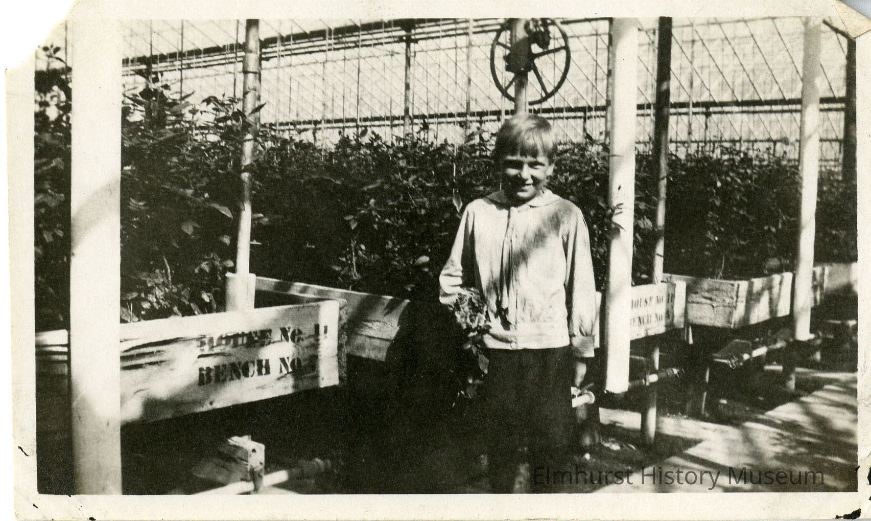 Unidentified boy at the Wendland-Keimel Greenhouse on E. Park Avenue.Photograph Details