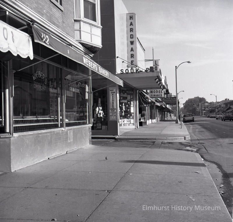 West side of York Street looking north. Visible businesses include Weber's Bakery and Soukup's Hardware.Photograph Details