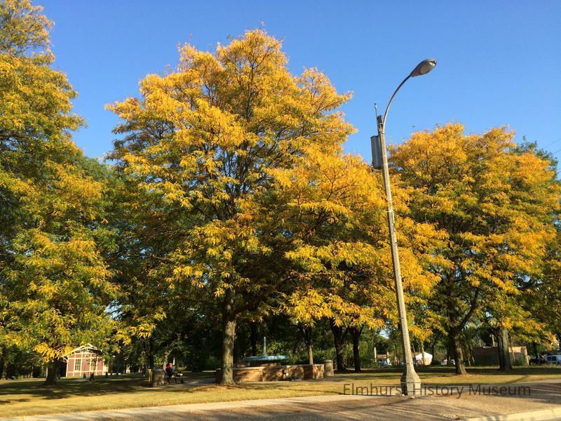 Wild Meadows Trace Park,511 S. York Street, looking east from York Street, including the Bicentennial Fountain and the Chicago Great Western Depot.Photograph Details