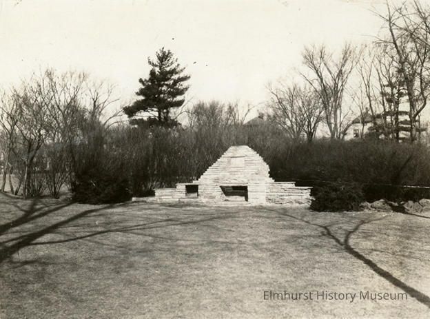 Typed caption: FIREPLACE / formerly in Wilder Park Written on back: Fireplace / Wilder Park Stamped on back: Elmhurst / Historical / Commission