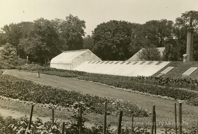 Typed caption attached to back lower edge: Greenhouse--Wilder Park On reverse: Greenhouse, Wilder Park / neg. #618-1 on file / Cen. 60 Stamped: Elmhurst / Historical / Commission / #952