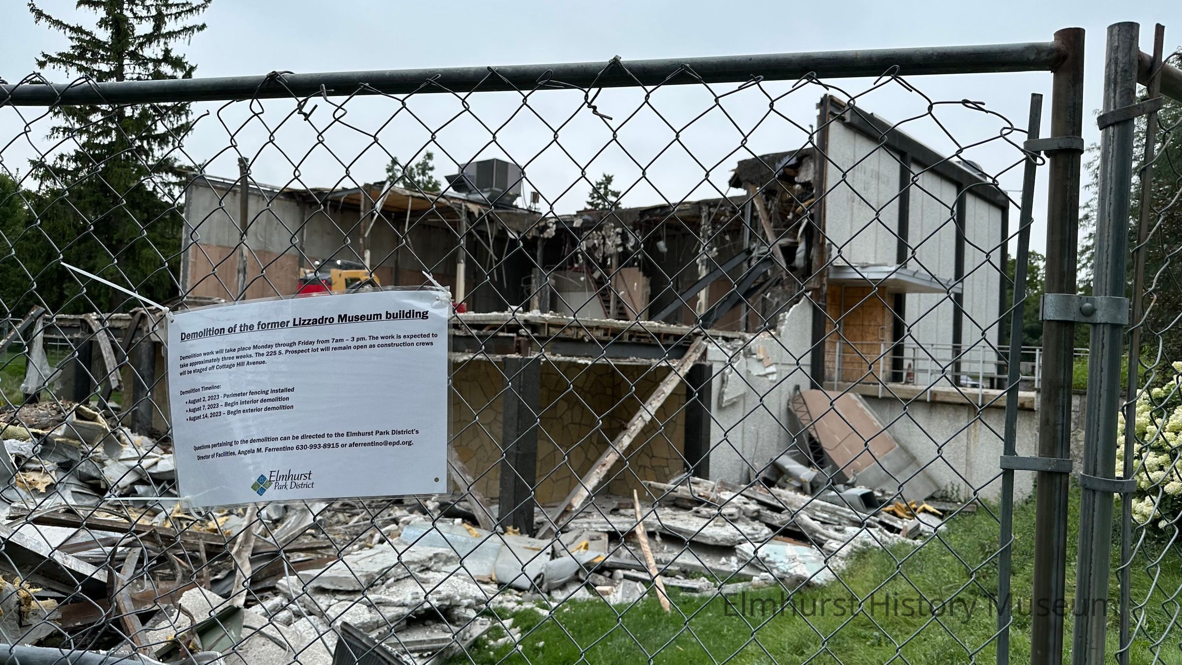 Demolition of the former Lizzadro Museum of Lapidary Art building at 220 S. Cottage Hill Avenue in Wilder Park.Photograph Details