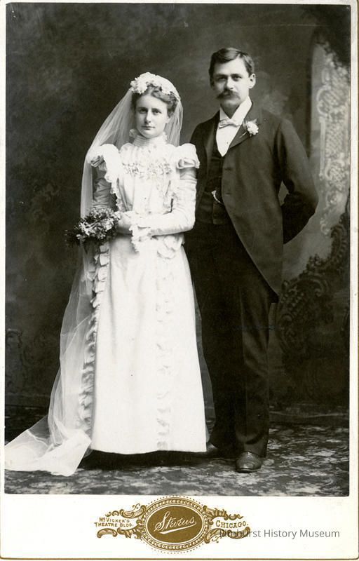 On back: J.K. Stevens & Son Co. Portraits / McVickers Theatre Building - Chicago / William & Clara Marquardt Graue / Married June 23, 1898