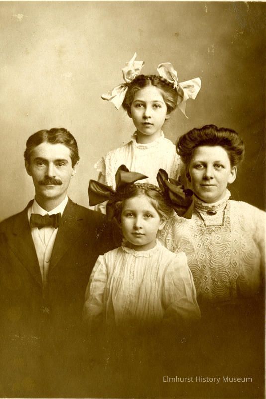 On back: Graue Family / William & Clara with / Ella and Flora circa 1909