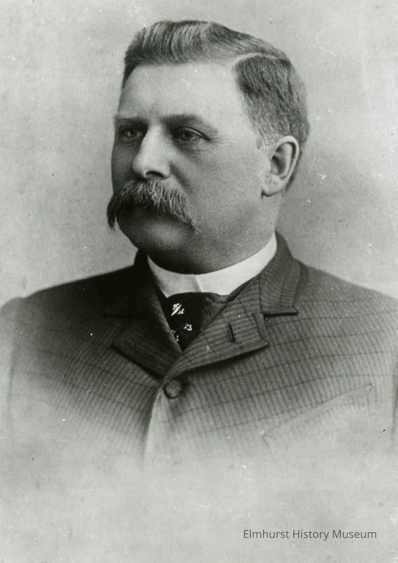 on back: Emery, William H, Sr. In 1889 came to Elmhurst and purchased the Wadhams Farm of 70 acres which he subdivided, spent $100,000 on developing area in south Elmhurst. Active in Elmhurst- Board of Education member Pres. Elmhurst Golf Club and one of founders of Elmhurst Spring Water Co and Elm Electric Light Co.