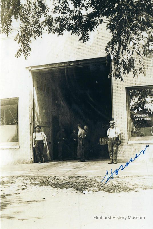Wm. A. Robbins Plumbing Shop at 141 S. York Street. Homer Egolf is on the rightPhotograph Details