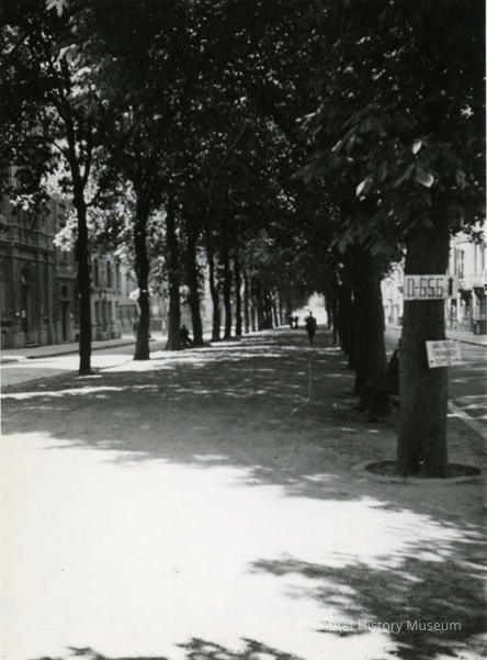 Pencilled on back: STREET IN CHARLEROI, BELGIUM MAY '45