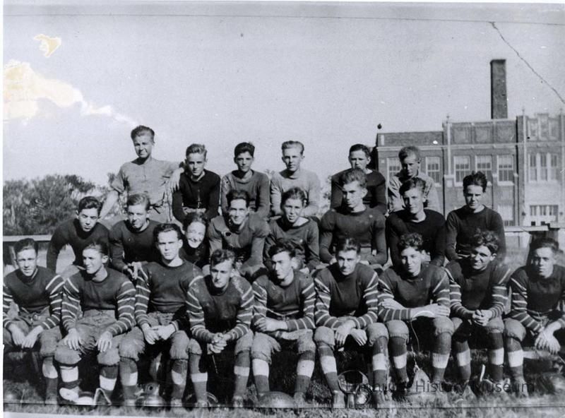 York High School Basketball team 1920-21 1st row: Ervin Krieter, Wally Miller, Frank McNellis, Riley Crane, Chuck "Tong" White, Peter Robbins, Bill Pearn, Paul Mewses, George Simmons 2nd row- Louis Bartman, Dick Hobein, Red Hayden, Bert Miller, Cark Balgerman, Keith Cushing, - Shascon, Elmer Kollmann 3rd row - Harold Snyder, Russ Wright, Charles Heiss, Ed Mueller, Walter Weiser, John Weiser.
