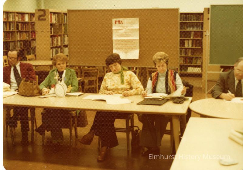 Color photo, York Community High School Parent Teacher Student Association board meeting at YCHS.Photograph Details