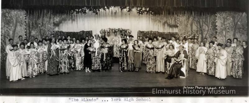Panoramic view of a York Community High School theater production, "The Mikado".Photograph Details
