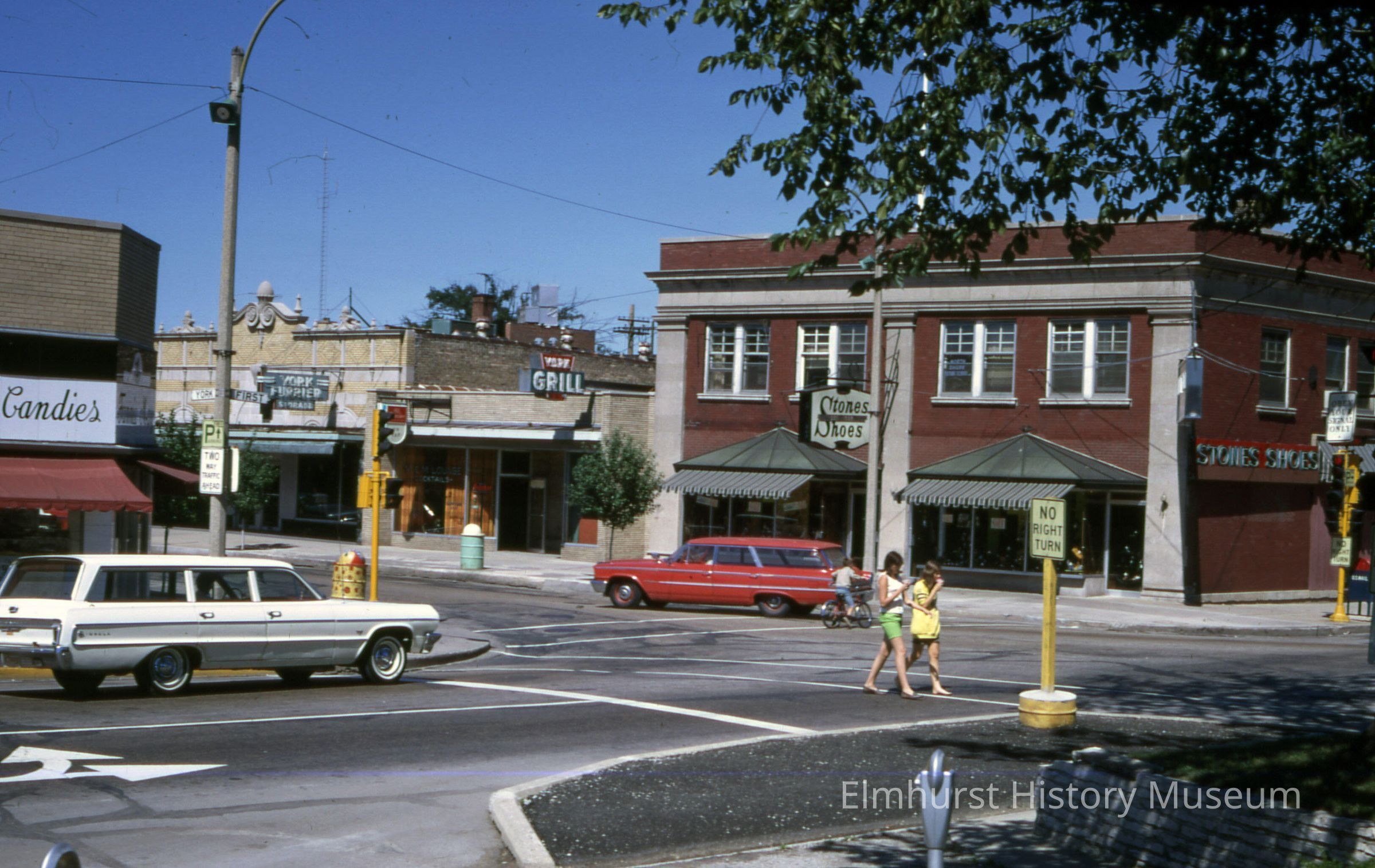 Intersection of York Street and First Street, looking northeast from Chicago & North Western Railroad platformPhotograph Details