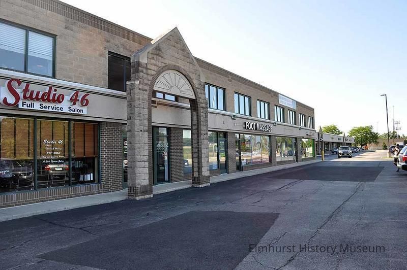 York Center Plaza Strip Mall at 561-605 N. York Street. Pictured businesses include Studio 46 Salon, Elmhurst Music Academy, and Foot Massage.Photograph Details