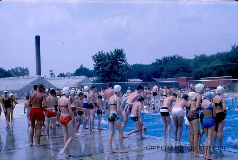 Newly-opened swimming pool at York Commons, 665 S. York Street. In the background are the Dramm greenhouses.Photograph Details