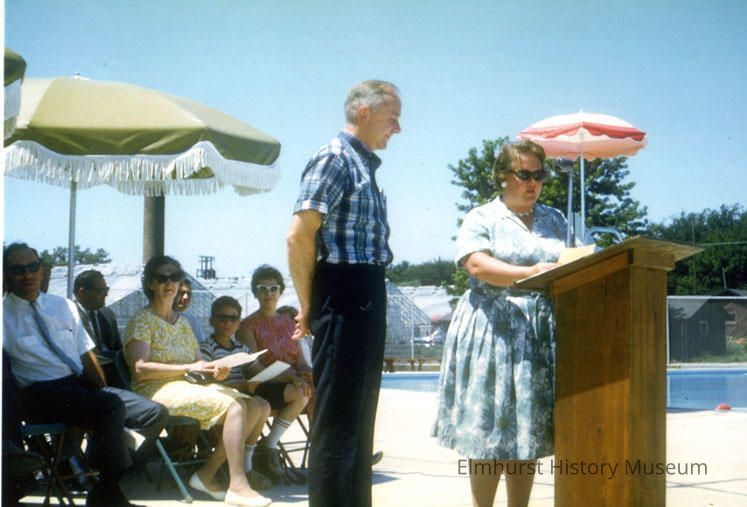 Ernest Wilbur receiving a citation from the Elmhurst Park District Board President at the Opening Day ceremonies of York Commons PoolPhotograph Details