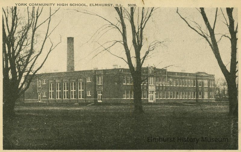 Printed on top front is "York Community High School, Elmhurst, ILL. 5026." Printed on the back top is "Post (logo) Card." Top left back has "Message May Be Written on This Side." Top right back has "Address Only On This Side."