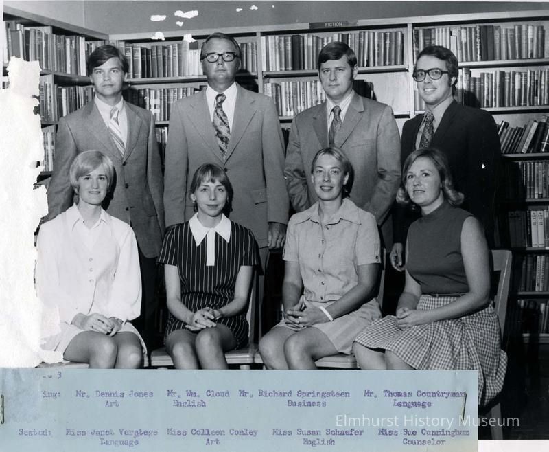 Standing: Mr. Dennis Jones, Art Mr. Wa. Cloud, English Mr. Richard Springsteen, Business Mr. Thomas Countryman, Language Seated: Miss Janet Verstege, Language Miss Colleen Carly, Art Miss Susan Schaefer, English, Miss Sue Cunningham, Counselor