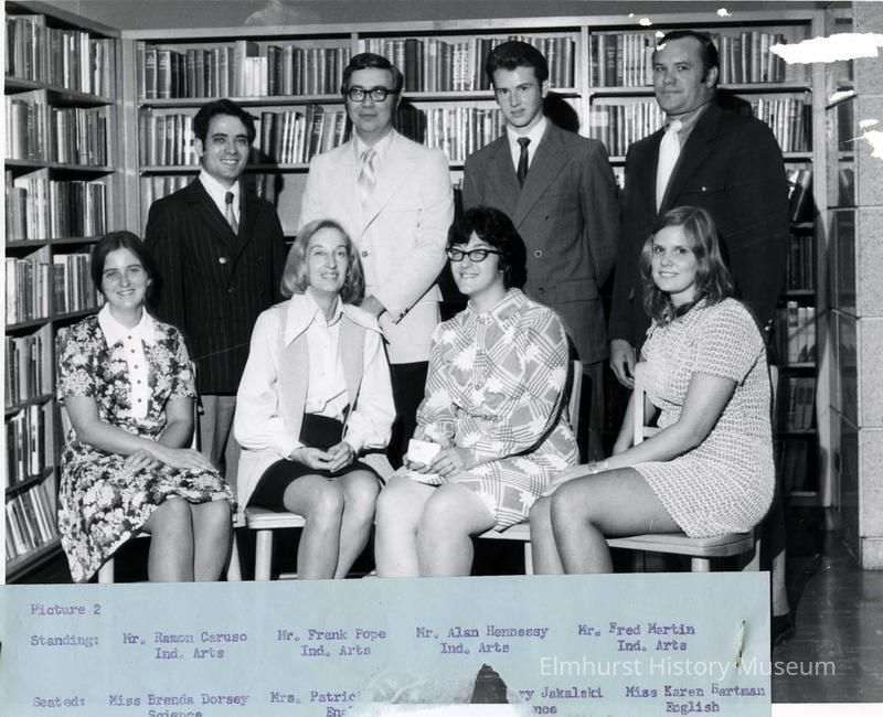 Standing: Mr. Roman Caruso, Ind. Arts Mr. Frank Pope, Ind. Arts Mr. Alan Hennessy, Ind. Arts Mr. Fred Morton, Ind. Arts Seated: Miss Brenda Dorsey, Science Mrs. Patricia ?, English Mrs. Jahalski, Science Miss (illegible) Hartman, English