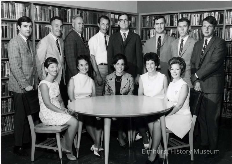 Left to right: Standing - Mr. Ronald Hoehstra-English, Mr. Marvin Carlson-P.E., Mr. Larry Wagner-Police Counselor, Mr. Kent Mohr-Psychologist, Mr. George Stege-English, Mr. John Latta-music, Mr. Robert Johnson-P.E., Mr. Alan Pieler-Social Science Seated - Mrs. Gail (illegible)-Biology, Mrs. Dolores Saunders-English, Miss Gelene Henley-English, Mrs. Joan Ostrander-CWT, Mrs. Carik Ruzcha-English