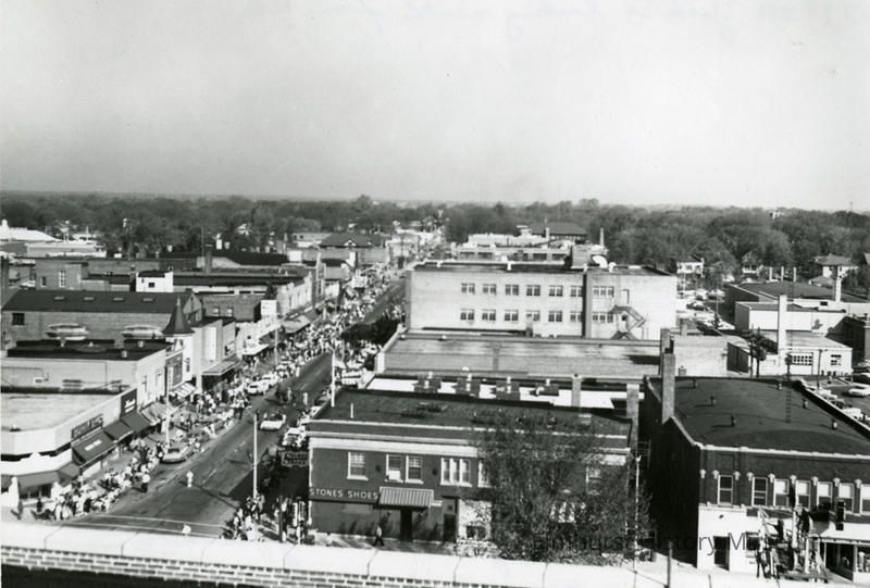 View of N. York Street looking north from the rooftop of 105 S. York Street, overlooking the York Community High School homecoming parade.Photograph Details