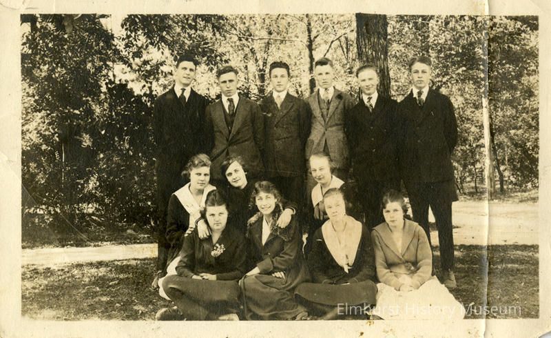 The 1920 graduating class of York Community High School. The students attended classes in the Elmhurst Community House since YCHS building did not open until September 1920.Photograph Details