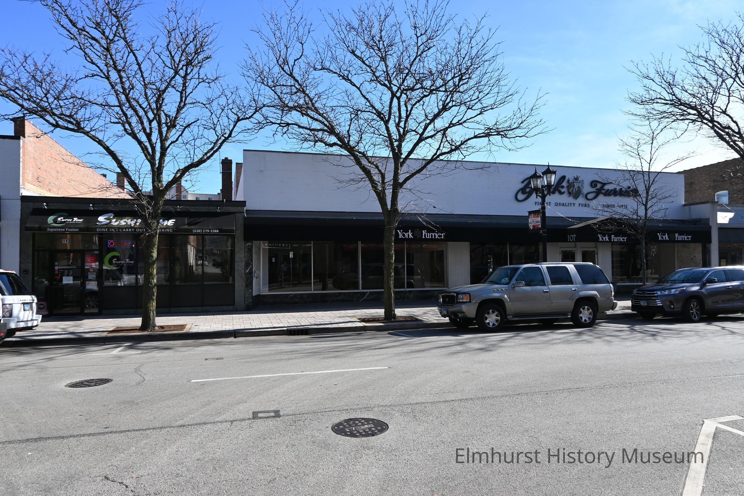 York Furrier at 107 N. York Street, shortly after it closed earlier in the year. Sushi Time at 113 N. York Street is at left.Photograph Details