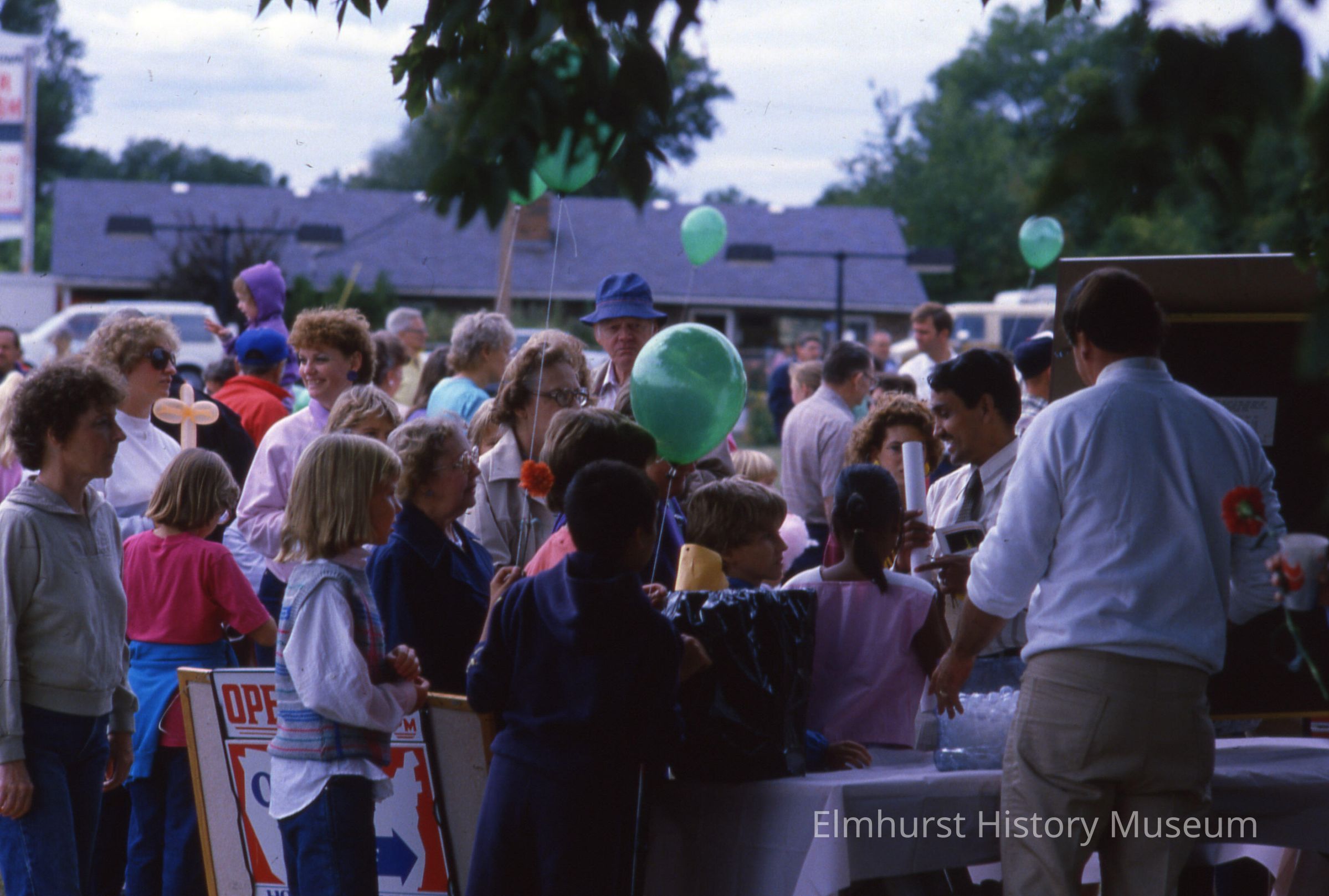 Grounds of York State Bank, 536 S. York Street, during a celebration for Elmhurst's Sesquicentennial.Photograph Details