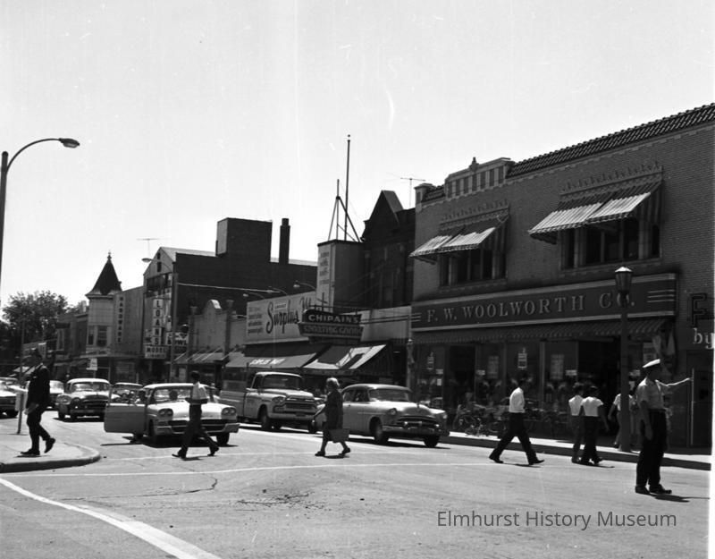 The west side of N. York Street looking south from Schiller Street. The Woolworth building is at right.Photograph Details