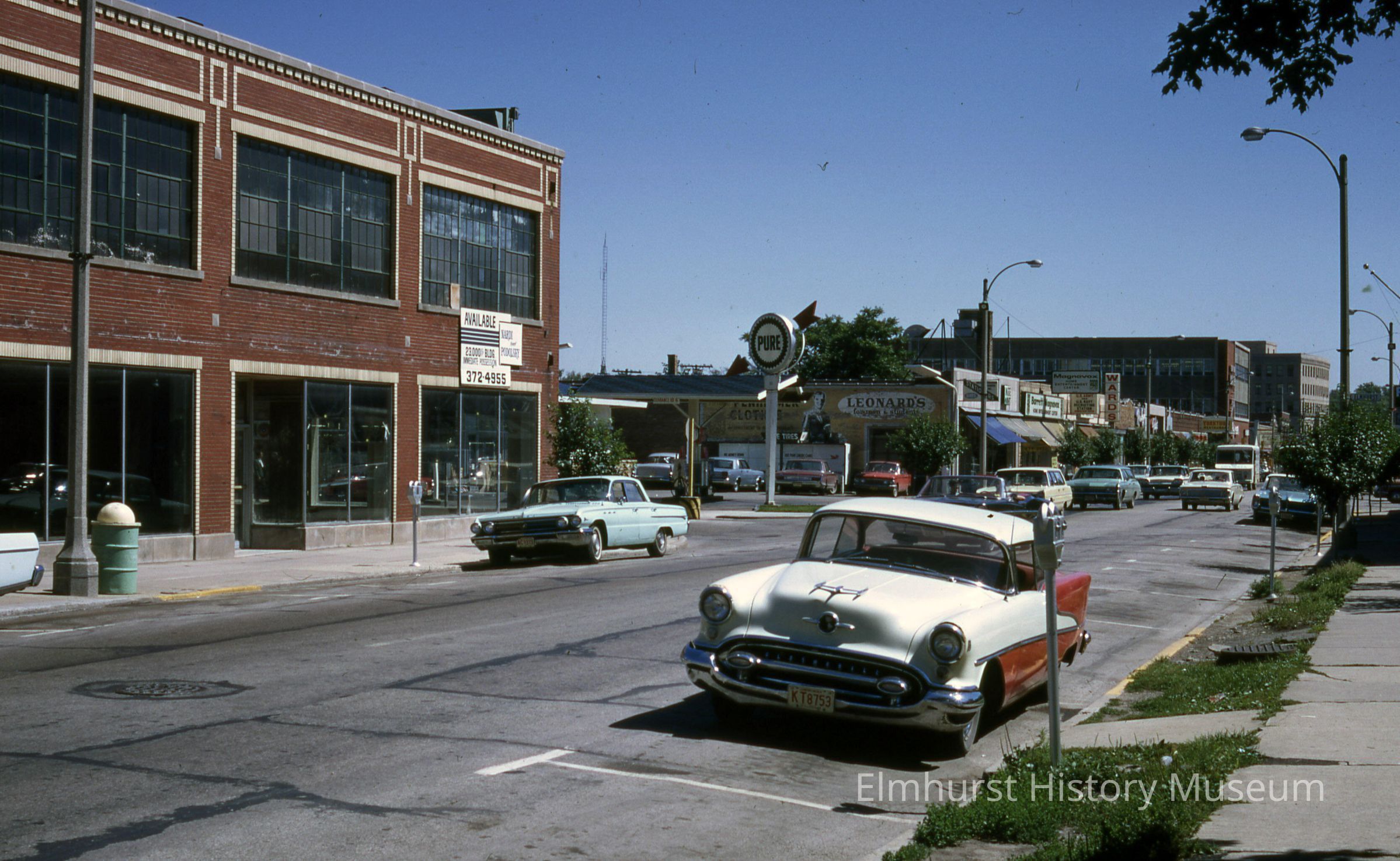 N. York Street looking south towards the intersection with Elmhurst Avenue. Davis Pure Oil station at 171 N. York is at center.Photograph Details