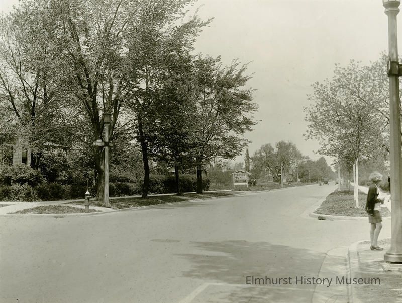 Stamped in purple ink on front upper right: 71 Handwritten in pencil on front white margin on bottom: Looking north from 3rd St. west side Handwritten in pencil on back upper middle: 1929 York St, north from 3rd st., c. 1929. Stamped in purple ink on back middle right: 71