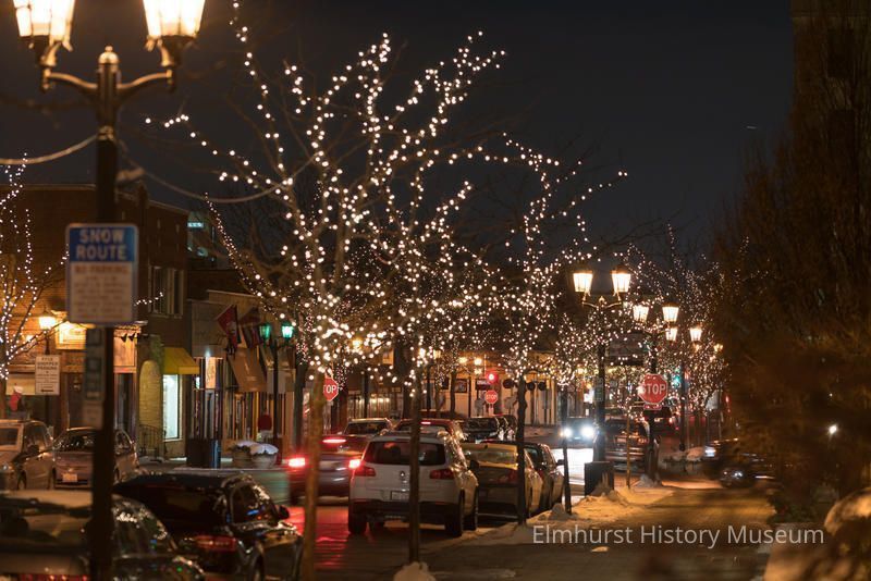 Downtown Elmhurst Christmas lights on York Street, looking south from Schiller.Photograph Details