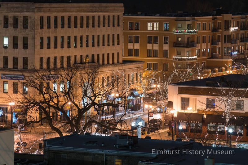 Elmhurst Christmas lights on York Street, looking southeast from the Addison Avenue Parking DeckPhotograph Details
