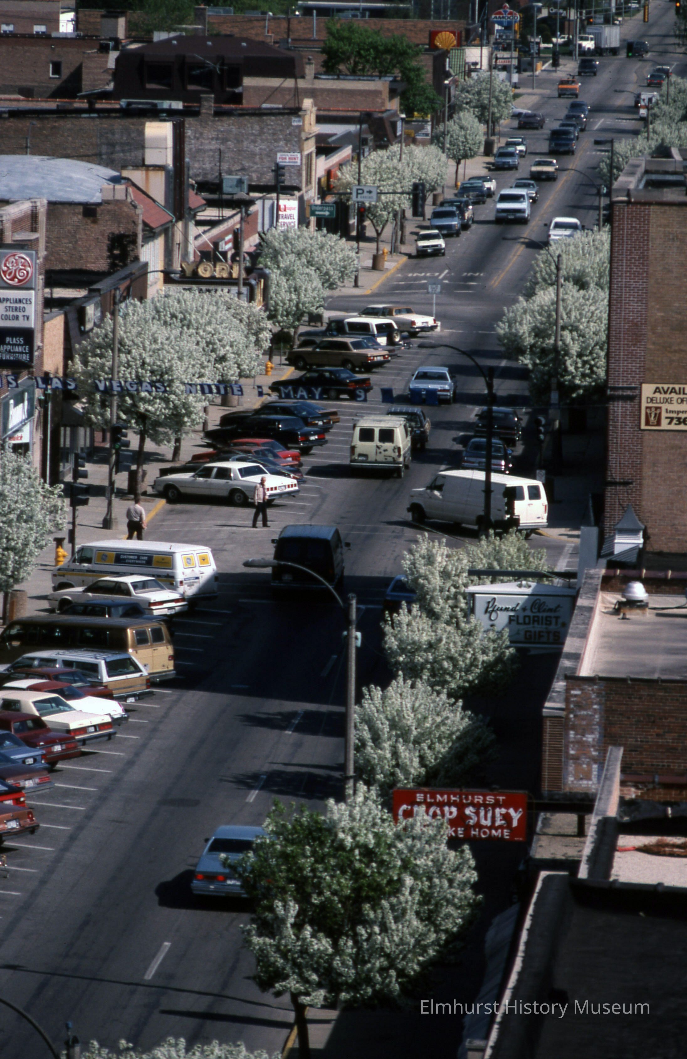 Aerial view of York Street looking north from the roof of Illinois Regional Bank, 105 S. York StreetPhotograph Details