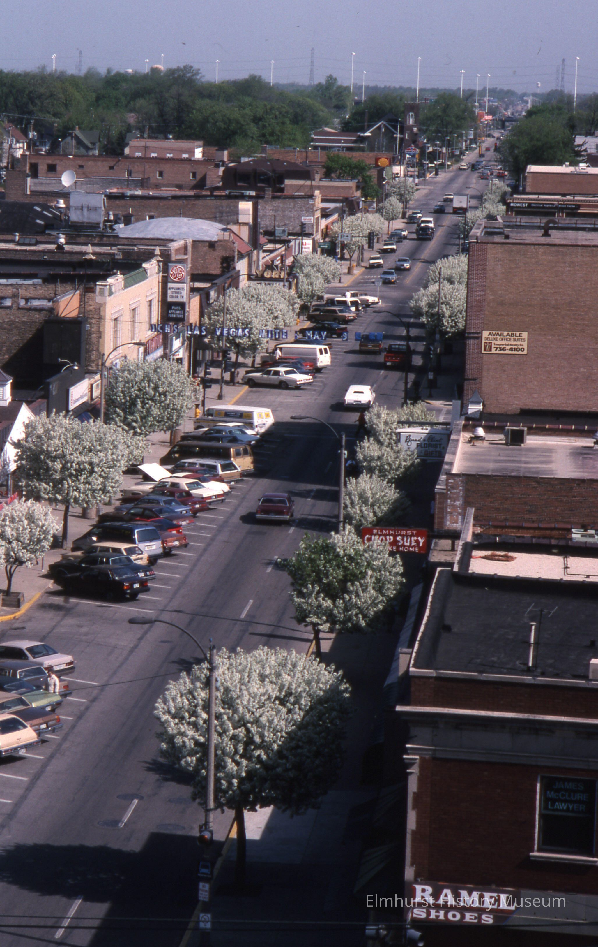 Aerial view of York Street, looking north from the roof of the Illinois Regional Bank, 105 S. York StreetPhotograph Details