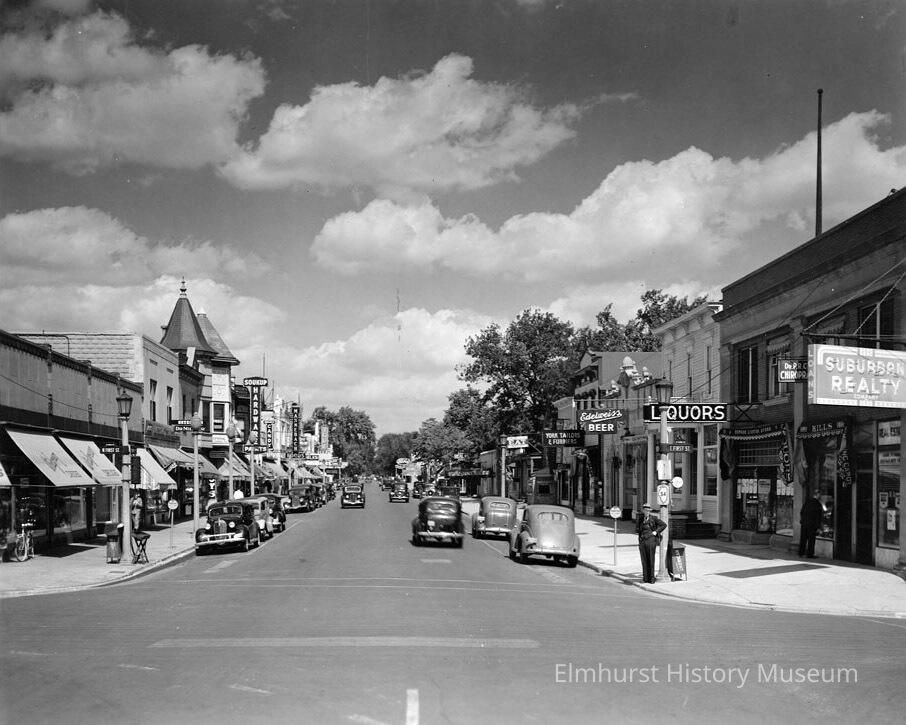 N. York Street looking north from First Street showing the downtown Elmhurst area.Photograph Details