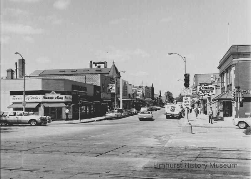 N. York Street looking north from the Chicago & North Western Railroad tracks.Photograph Details