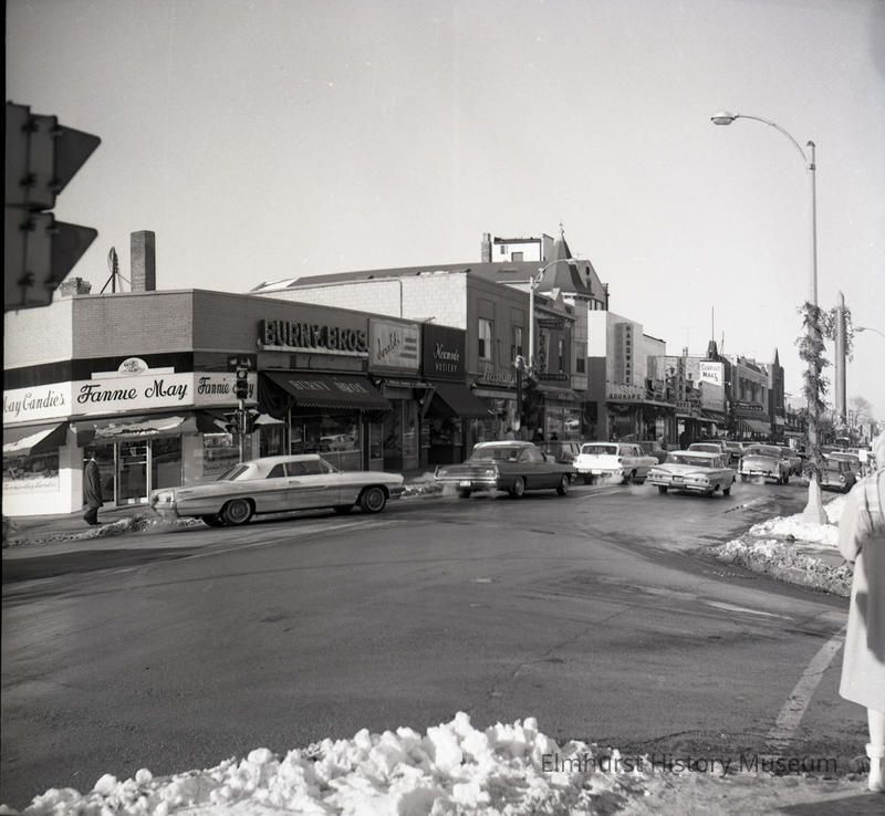 York Street looking northwest from First Street. Christmas decorations are on the street lights.Photograph Details