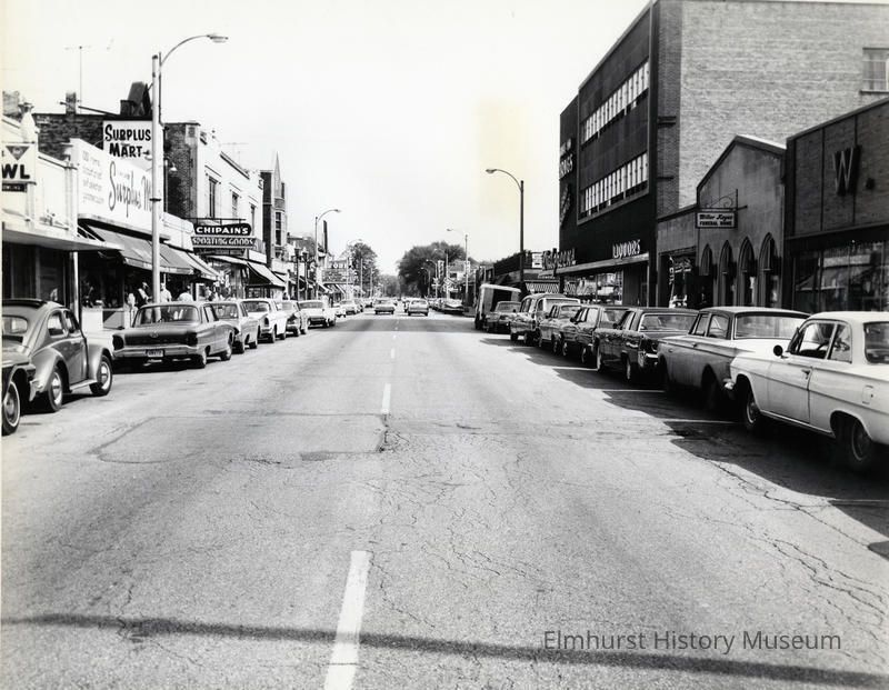 Chipain's Sporting Goods and Walgreens at York Street north from 118 N. York