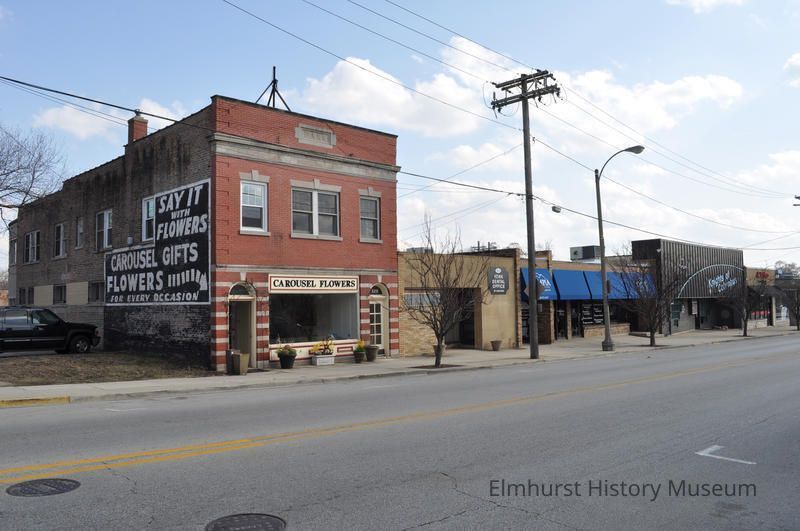 Businesses on the east side of S. York Street, just north of Vallette Street, including Carousel Flowers, York Dental Office, and the Elmhurst Knights of Columbus.Photograph Details