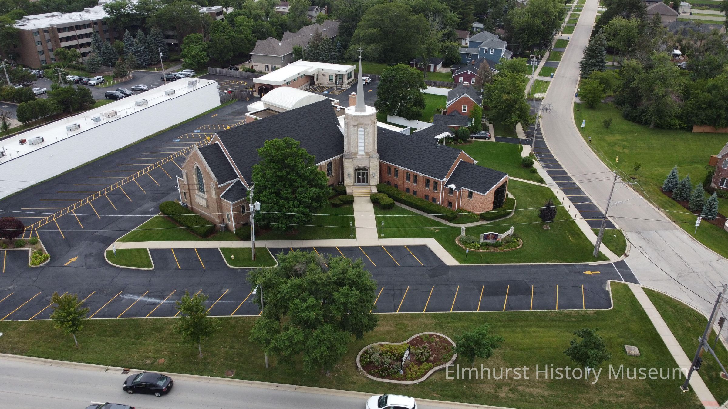 Aerial view of Yorkfield Presbyterian Church at 1099 S. York Street, on the northeast corner of S. York Street and Lexington Street.Photograph Details