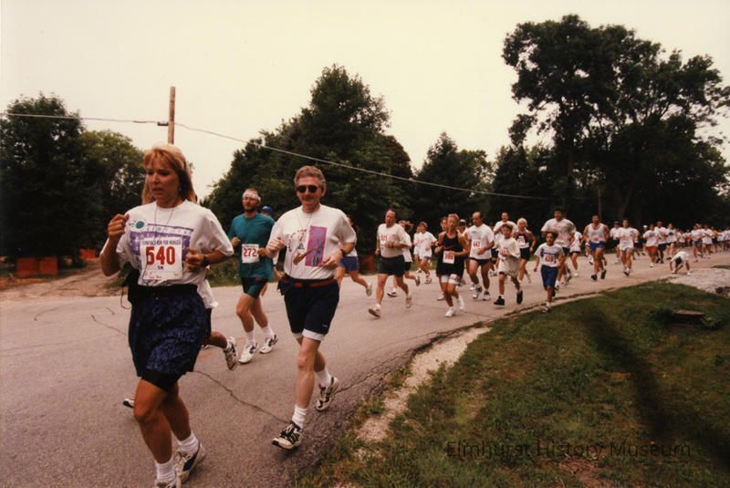 Participants in the 5K Run for Hunger in the Yorkfield Subdivision. Yorkfield Presbyterian Church at 1099 S. York Street sponsored the Yorkfield Run for Hunger. The church operates a food pantry.Photograph Details