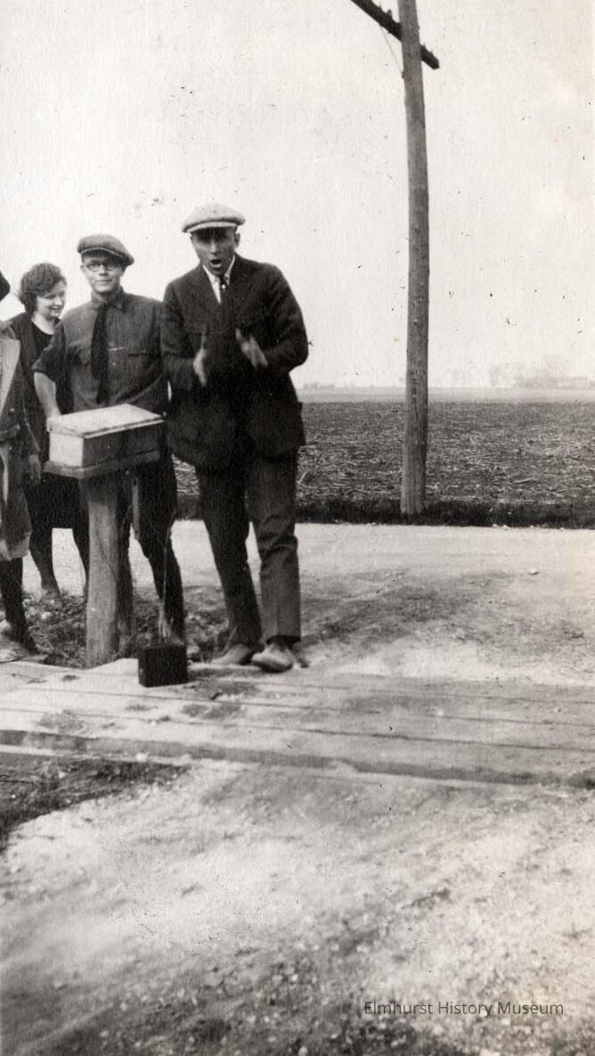 Black and white photo, young people near a mailbox on unpaved North AvenuePhotograph Details