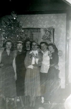 Group of young women in front of a Christmas treePhotograph Details