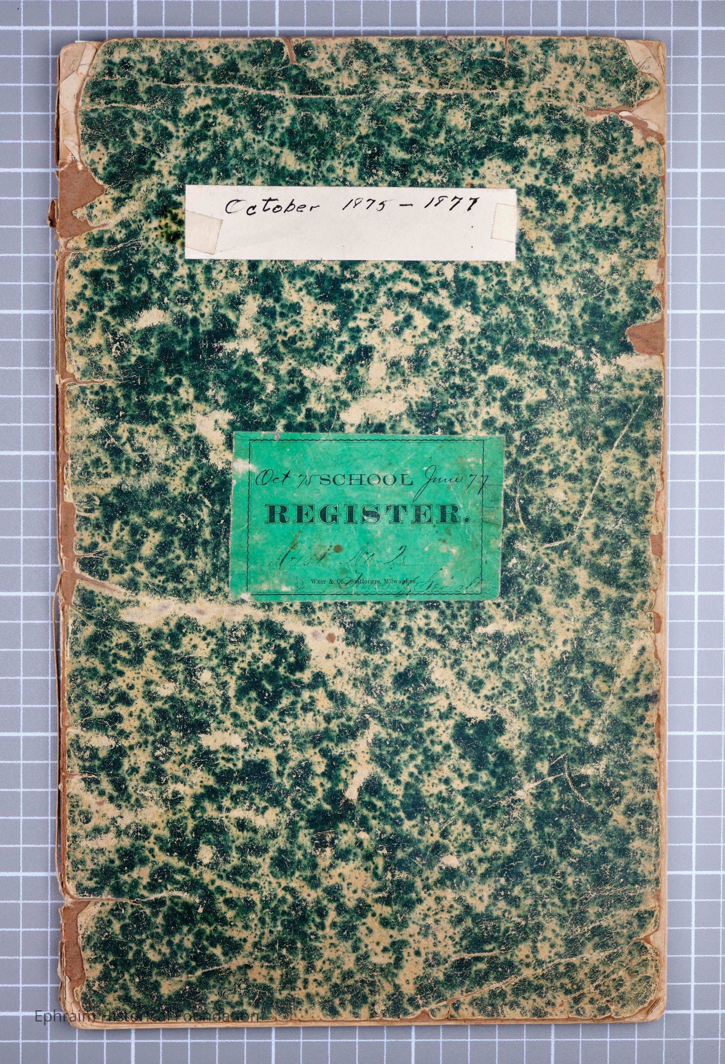 School Register;green paper bound booklet;October 1875-June 1877;