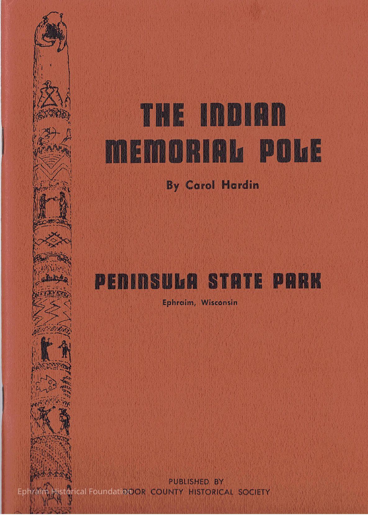 The story of the Indian Memorial Pole in Peninsula State Park, recreated by the author's husband, Adlai S. Hardin, in the summer of 1968 and erected on July 14, 1970.