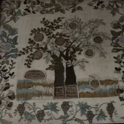 Embroidery, Pictorial needlework, Sampler, Apple Tree Family Register, Family TreesDescription