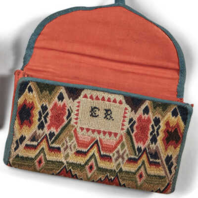 Flame stitch wallets were especially popular from the 1740s to the 1790s. A man’s wallet, often embroidered