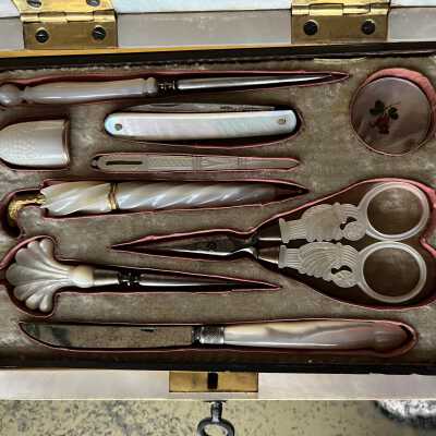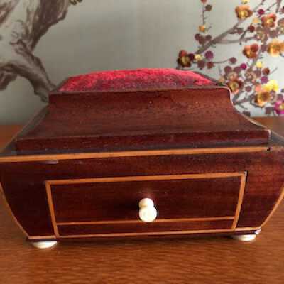 Sewing Box, Sloped Lid, Inset Pincushion, Parquetry Decoration