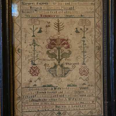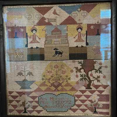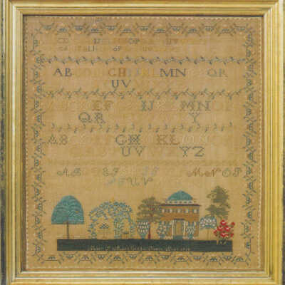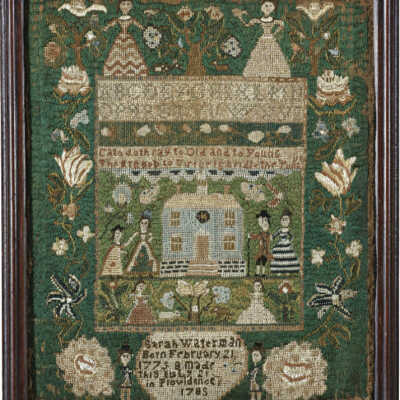 Sarah Waterman, Balch School Sampler, House and Figures, 1785